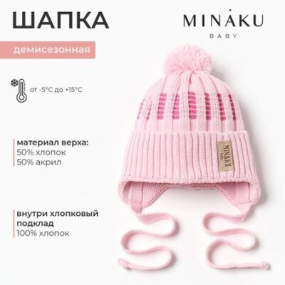 Шапка детская MINAKU, р-р 35-40, нежно-розовая.