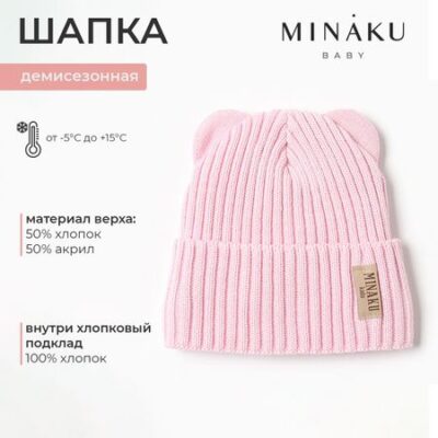 Шапка детская MINAKU, р-р 35-40, цвет нежно-розовый.