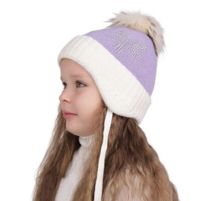 Детская шапка «Flioraj» с завязками сделана из качественных и теплых материалов: шерсти, вискозы, кашемира, ангоры и акрила. Двухслойная конструкция с внутренним слоем из хлопка и синтепона для лучшей ветрозащиты. Резинка по краям для удобной посадки. Лобная часть декорирована стразами в виде "бантика", а на макушке съемный помпон из натурального меха. Эта шапка проста в уходе, не скатывается и сохраняет цвет после стирки. Она отлично дополнит образ ребенка и согреет его в холодную погоду.
