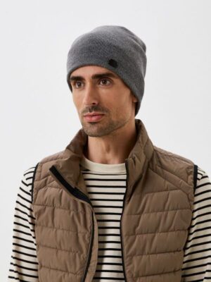 Двойная удлиненная шапка-колпак. Длина изделия — 24 см. Шапка выполнена из полушерстяной пряжи. Сбоку шапка украшена фирменной кожаной шильдой. Шапку можно носить как колпак, а можно уложить, сделав произвольную закладку сзади.