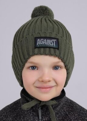 Детская шапка с отворотом на завязках. Шапка связана ластичным переплетением и декорирована светоотражающей нашивкой в центре лба. Головной убор отлично подходит для комфортного ношения холодной зимой, так как имеет утепление — флис.<br> Рекомендуем стирать в режиме «Деликатная стирка» при температуре 30 градусов