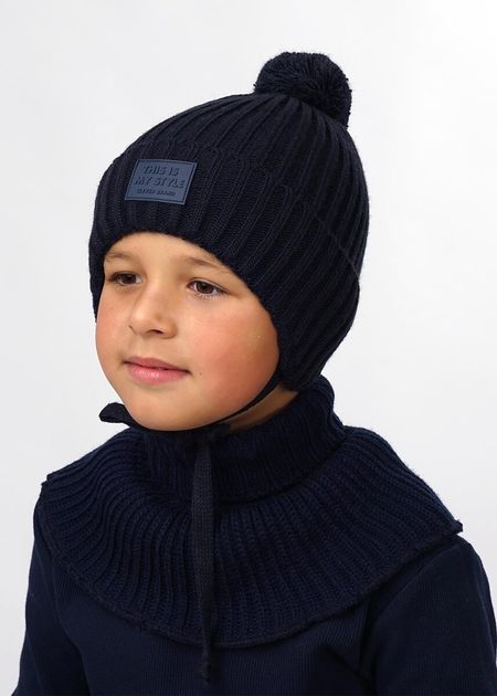 Детская шапка с отворотом на завязках. Шапка связана ластичным переплетением и декорирована светоотражающей нашивкой в центре лба. Головной убор отлично подходит для комфортного ношения холодной зимой, так как имеет утепление — флис.<br> Рекомендуем стирать в режиме «Деликатная стирка» при температуре 30 градусов