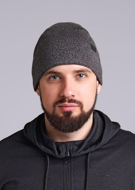 Мужская вязанная шапка Clever с отворотом.<br> Шапка рассчитана на ношение зимой и в межсезенье и подходит для повседневной носки, занятий спортом или прогулок.<br> Шапка выполнена ластичным переплетением и декорирована стильной нашивкой-логотипом. Мужская шапка послужит не только отличной защитой от холода, но и модным аксессуаром для создания стильного повседневного образа.