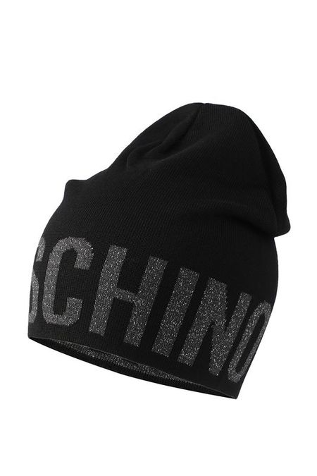Шапка бини с добавлением шерсти и логотипом бренда Moschino