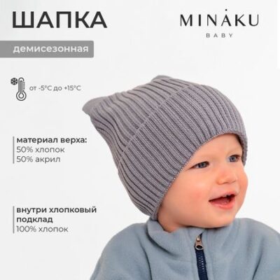 Главная » Аксессуары Шапка детская MINAKU, р-р 46-48, серая Просмотров 5 Шапка детская MINAKU, р-р 46-48, серая MINAKU