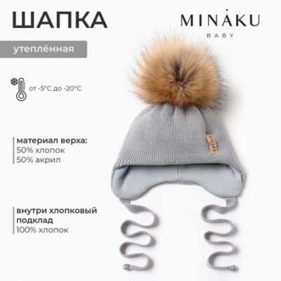 Шапка детская MINAKU с утеплителем, размер 44-46, серая