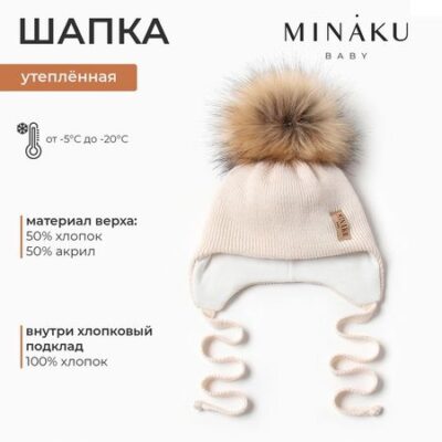 Шапка детская MINAKU с утеплителем, размер 48-50, молочная
