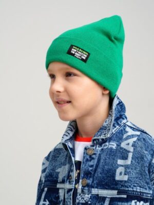 Шапка из вязаного трикотажа. Высокое содержание хлопка в составе нити.