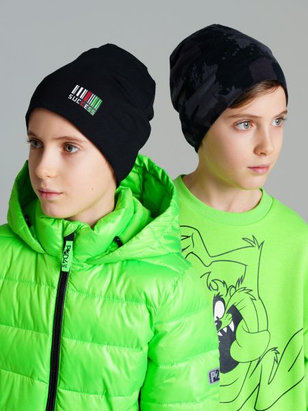 Шапка из качественного и приятного на ощупь трикотажа джерси. Высокое содержание хлопка 95%. Благодаря наличию эластана в составе ткани изделие проще в уходе и держит форму. 2 шт. в комплекте.