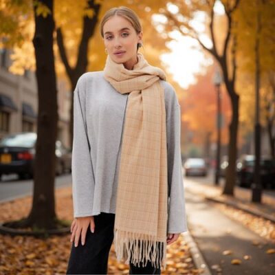 Главная » Аксессуары Шарф Просмотров 5 Шарф зимний с кистями MINAKU 65*180 + 8 см цвет бежевый. MINAKU