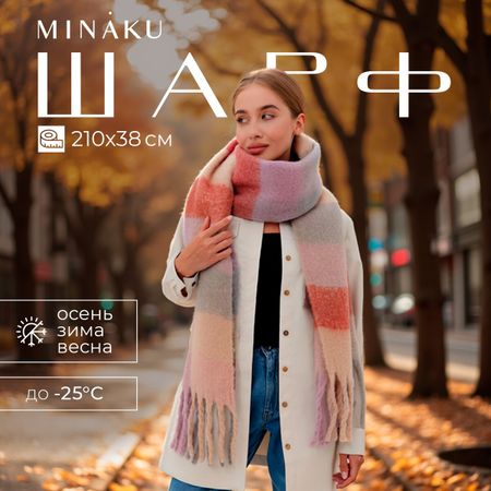 Шарф зимний объемный с кистями MINAKU клетка 210*38+18 см.