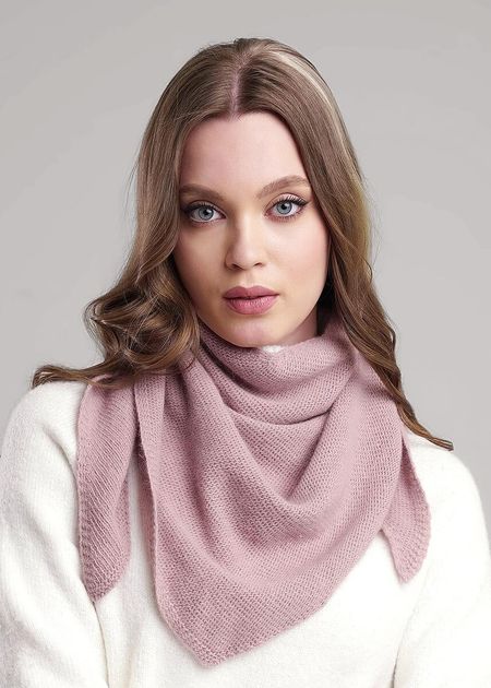 Женская шарф-косынка выполнена из пряжи с содержанием ангоры. Размеры косынки 120 х 55 см.