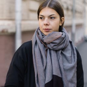 Цвет: переплетение нитей дымчато — сиреневой гаммы, бордо и коралловой