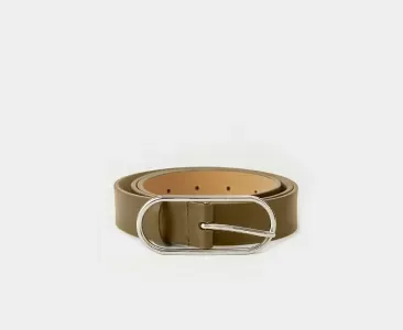 Женский ремень шириной 30 мм с овальной пряжкой. Выполнен из гладкой кожи с легким естественным блеском.Тонкаяпряжка овальной формы добавляет деликатный акцент образу и сочетается с любыми вещами базо