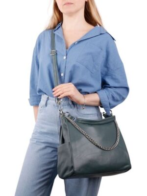 <div>Сумка женская на одной съемной ручке высотой 18 см из натуральной гладкой кожи закрывается на молнию. В комплекте регулируемый кожаный плечевой ремень максимальной длиной 131 см и ремень-цепочка длиной 56 см.Сумочка в городском стиле, подходит для повседневной носки, прогулок, в качестве подарка На дне сумки нет металлических ножек. Внутри два отделения перегородка на молнии, один карман на молнии один открытый карман. Сзади карман на молнии. По бокам открытые карманы Вес сумки 850 грамм, в упаковке 750 грамм.Происхождение бренда Россия.Производство Китай. Натуральная кожа-100%. Высота — 28 см. Ширина — 29 см. Глубина — 11 см.</div>