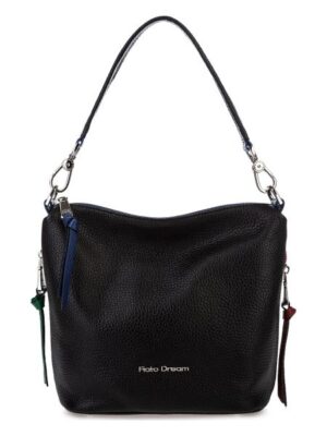 <div>Сумка женская из натуральной кожи: закрывается на молнию. Внутри: 2 отделения, перегородка на молнии, 1карман на молнии, 2 кармана открытых. Снаружи: 2 боковых кармана на молнии.Цвет фурнитуры: серебро.Высота ручки 22см.Дополнение: съемный плечевой ремень.Размеры: высота*ширина*глубина: 22*27*11 см.Происхождение бренда:Италия. Производство: Россия.</div>