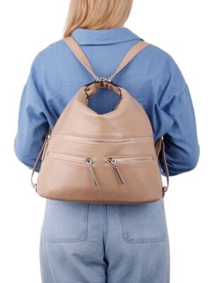 <div>Сумка-рюкзак женская на одной ручке на плечо из натуральной гладкой кожи. В комплекте регулируемые плечевые ремни максимальной длиной 75 см Большая мягкая сумка в городском спортивном стиле, подходит для повседневной носки, прогулок, в качестве подарка. На дне сумки нет металлических ножек. Внутри два отделения на молнии, один карман на молнии один открытый карман. Снаружи один большой и два маленьких кармана на молнии Сзади карман на молнии Цвет фурнитуры серебро. Вес сумки 950 грамм, в упаковке 800 грамм. Происхождение бренда Россия. Производство Китай. Высота — 29 см. Длина — 32 см. Глубина — 12 см</div>