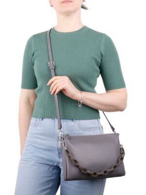 <div>Сумка женская на одной ручке на плечо из натуральной гладкой кожи. Закрывается на молнию. Длина съемного плечевого ремня 64 см. Мягкая и легкая , подходит для повседневной носки, прогулок, в качестве подарка. В комплект входит регулируемый кожаный ремень, максимальной длиной 112 см и пластиковая ручка-цепочка из крупных звеньев в тон сумки длиной 46 см На дне сумки нет металлических ножек. Внутри три отделения, один карман на молнии, один открытый карман. Снаружи сзади карман на молнии. Вес сумки 600 грамм, в упаковке 500 грамм.Происхождение бренда Россия. Производство Китай. Натуральная кожа-100%. Высота — 18 см. Ширина — 25 см. Глубина — 9 см.</div>