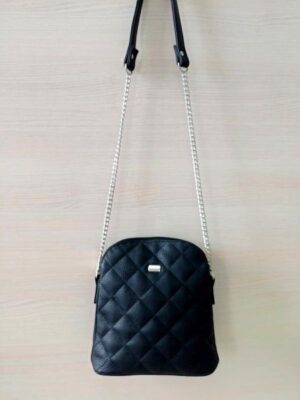 Небольшая сумочка с элегантной отстрочкой. Носится на длинном ремне с цепочкой. Внутри кармашек на молнии. <br> Материал: экокожа, подклад: полиэстер <br> Размер, см:22*21*8,5