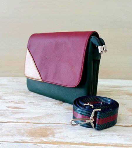 Berta — миниатюрная сумка кросс-боди, имеет 2 отделения на молнии и промежуточное отделение, наружний карман на молнии, закрывается на клапан, декорированный металлическим украшением или цветными вставками. Носится в руке как клатч, либо на цветном ремне. <br> Материал: экокожа <br> Размер, см:25*17*5