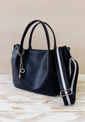 Небольшая, но вместительная сумка с 2 удобными ручками и одним отделением, декорирована металлической подвеской и имеет в комплекте яркий элегантный ремень-стропу с повышенной стойкостью к истиранию. <br> Материал: экокожа, подклад: полиэстер. <br> Размер, см: 24*30*16