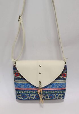 Небольшая легкаялетняя сумкас клапаном,декорированным бусинами в этническом стилена длинном регулируемом ремне, Одно отделение, внутри карман на молнии и кармашки для ключей.Цвет изделия на фотографии может незначительно отличаться от цвета фактического товара. <br> Материал: экокожа и оксфорд <br> Размер, мм:240*180*70