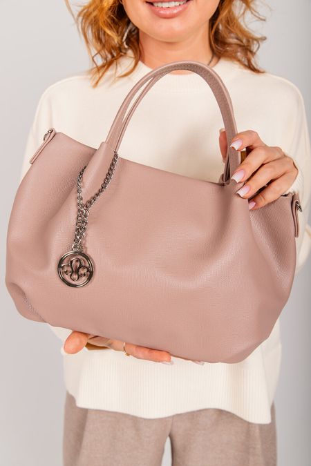 Небольшая, но вместительная сумка с 2 удобными ручками и одним отделением, декорирована металлической подвеской и имеет в комплекте регулируемый ремень на карабинах. <br> Материал: экокожа, подклад: полиэстер. <br> Размер, см: 24*30*16