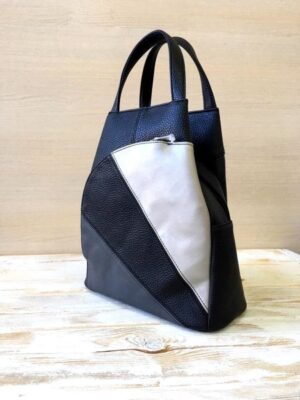 Сумка-трансформер, которую можно носить в руке, или как рюкзак. Вход в сумку расположен максимально безопасно от воришек, накладной карман интересной формы сочетает в себе несколько цветов. Цвет изделия на фотографии может незначительно отличаться от цвета фактического товара. <br> Материал: экокожа, подклад: полиэстер. <br> Размер, мм:260*310*120