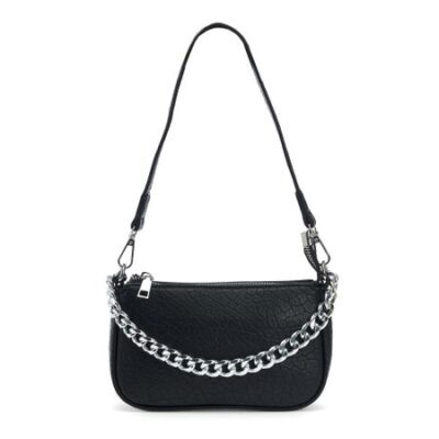 Женская маленькая сумка выполнена из искусственной кожи, которая имеет приятную крупную текстуру. Габариты сумочки — (ВхШхГ) 11х19х6 см. Основное отделение на подкладе из плотного полиэстера закрывается на надежную молнию. Внутри один кармашек на молнии. Несъемная ручка-цепочка-высотой 14 см. В комплекте плечевой ремень- 115 см. и короткий — 50 см, позволят носить сумку на плечо и через плечо как кроссбоди. Фурнитура выполнена из металла в серебристом цвете. Сумка с ручкой поставляется в текстильной (пыльник) и полиэтиленовой упаковке, что защищает ее от повреждений, а также позволяет удобно хранить женскую сумочку в дальнейшем использовании.