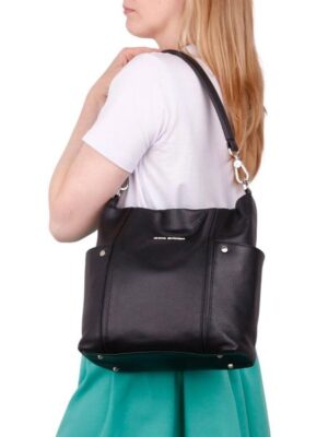 <div>Сумка женская из натуральной кожи: закрывается на молнию. Внутри:2 отделения, перегородка на молнии, 1карман на молнии, 2 открытых кармана. Снаружи: 2 боковых кармана. Цвет фурнитуры: серебро.Высота ручки 27 см. Натуральная кожа-100%. Высота — 27 см, ширина — 30 см, глубина — 12 см</div>