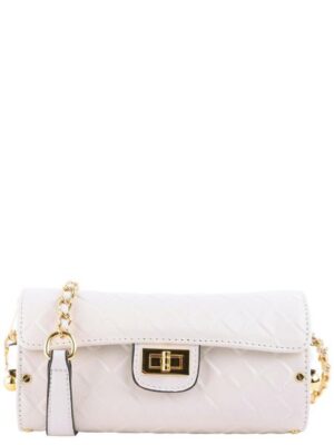 <div>Сумка женская на длинной ручке-цепочке, из натуральной тисненой кожи, закрывается на клапан с поворотным замком. Оригинальной круглой формы, боковины выполнены из металлической рифленой фурнитуры. Сумочка стильная, нарядная, не ординарная. Подходит для торжественных случаев, повседневной носки, в качестве подарка. Внутри одно отделение, карман на молнии, открытый карман. Длина цепочки 138 см. Высота — 9 см. Длина — 19 см. Глубина — 7 см</div>