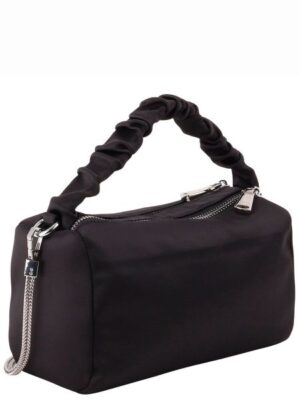 <div>Сумка женская на одной жатой ручке из водоотталкивающего высокопрочного текстиля. Легкая и стильная. Подходит для торжественных случаев, повседневной носки, в качестве подарка. В комплекте имеется плечевая ручка-цепочка длиной 110см. У сумки два отделения закрываются на молнию. Внутри один карман открытый, один карман на молнии. Цвет фурнитуры серебро. На дне сумки ножек нет. Высота ручки 7см.Происхождение бренда Италия.Производство Россия. Текстиль</div>