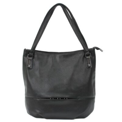 Женская сумка с ручками на плечо выполнена из качественной экокожи с элементами лака. Сумка женская закрывается на молнию, внутри два отделения, разделенные перегородкой с молнией, два открытых кармана для мобильного телефона и мелочи, карман на молнии, снаружи на задней стенке карман закрывающийся на молнию. Высота ручек дамской сумки 23 см. Сумочка отлично подойдет для повседневной носки и вечерней моды.