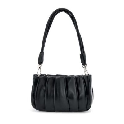 Маленькая плиссированная сумочка в форме багета из матовой экокожи станет отличным дополнением к вашему гардеробу! Мягкие складки придают сумочке праздничное предназначение. Габариты сумочки — (ВхШхГ) 11х21х6 см. Основное отделение кроссбоди на подкладе из плотного полиэстера закрывается на надежную молнию. Внутри маленькой сумки один карман на молнии. В комплекте прилагается два плечевых ремня: 50 см. и 120 см., поэтому сумку можно носить в руке, на плечо и через плечо как кроссбоди. Фурнитура выполнена из металла в серебристом цвете. Сумка с ручкой поставляется в текстильной (пыльник) и полиэтиленовой упаковке, что защищает ее от повреждений, а также позволяет удобно хранить женскую сумочку в дальнейшем использовании.