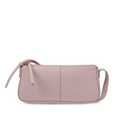 Элегантная женская сумка-багет выполнена из качественной натуральной кожи с зернистой фактурой. Сумочка маленькая, габариты изделия (ШхВхГ)- 26х13х10 см. Нежный оттенок и удобная форма – такая классическая сумка кросс-боди дополнит любой современный образ. Внутри сумки через плечо находится одно основное отделение на подкладе из плотного полиэстера. Модель закрывается на молнию с длинным кожаным поводком. Внутри мягкой сумки расположен один открытый карман и карман на молнии. Плечевой ремень не съемный и регулируется по длине до 90 см., поэтому сумку удобно носить на плечо и через плечо. Фурнитура выполнена в золотистом цвете.