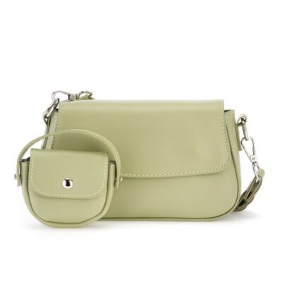 Женская сумка в форме багет выполнена из матовой экокожи , которая имеет мягкую и гладкую фактуру. Габариты сумочки — (ВхШхГ) 13х21х6 см. Основное отделение кроссбоди на подкладе из плотного полиэстера закрывается на клапан с магнитами и надежную молнию. Внутри маленькой сумки один карман на молнии. В комплекте прилагается кошелечек для мелочей и два плечевых ремня: 75 см. и 110 см., поэтому сумку можно носить в руке, на плечо и через плечо как кроссбоди. Фурнитура выполнена из металла в серебристом цвете. Сумка поставляется в пыльнике и полиэтиленовом пакете.