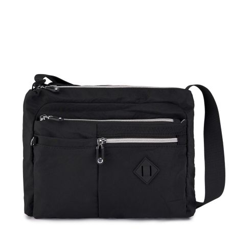 Легкая и вместительная женская сумка из жатого полиэстера со множеством отделений отлично подойдет для прогулок и путешествий. Размер изделия по швам ВхГхШ 21х5х27. Плечевой ремень регулируется до 130 см. Сумка поставляется в полиэтителеновой упаковке.