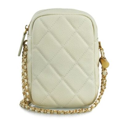 Женская сумка кросс-боди выполнена из качественной натуральной кожи зернистой фактуры. Стеганая отделка и стильная ручка-цепочка – такая маленькая сумочка дополнит любой современный образ. Габариты сумки мини — 18х12х6 см. Внутри сумки на плечо расположено одно основное отделение на подкладе из плотного полиэстера, а также открытый карман и карман на молнии. Сумка закрывается на удобную молнию. Фурнитура выполнена в цвете античного золота.