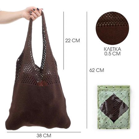 Сумка-авоська хозяйственная, клетка 0.5 см, коричневая. Сетчатые сумки из хлопка, произведенного с заботой о людях и природе, позволят вам обходиться без одноразовых пластиковых пакетов, а значит, уменьшить воздействие на климат. Кроме того, в таких сумках можно хранить фрукты и овощи. Особенности: <ul> <li> Сетка обеспечивает циркуляцию воздуха, что позволяет овощам и фруктам дольше сохранять свежесть.</li> <li> Прочная, не повреждается при переноске острых предметов.</li> <li> Компактная в сложенном виде.</li> <li> Легко стирается и быстро сохнет.</li> <li> Не наносит вред окружающей среде — заменяет пакеты.</li> </ul>
