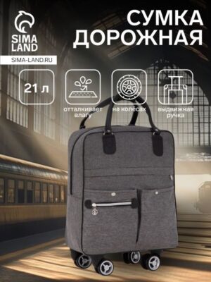 Сумка дорожная 18" на 4 колесах, отдел на молнии, 4 наружных кармана, серая. Сумка дорожная на колесах, выполненная в стильном сером цвете, идеально подходит для тех, кто ценит функциональность и комфорт. Она имеет оптимальные размеры для путешествий: длина — 35 см, высота — 40 см и ширина — 15 см. Универсальный одноместный отдел на молнии и четыре внешних кармана позволяют организовать вещи по максимуму. Прочная и легкая конструкция из полиэстера и устойчивые пластиковые колеса делают ее идеальной для долгих поездок. Эта дорожная сумка унисекс — отличный выбор для всех любителей путешествовать налегке. <b> Преимущества</b> <ul> <li> Удобство передвижения: четыре колеса позволяют легко транспортировать сумку по любой поверхности.</li> <li> Эргономичная ручка: комфортное использование даже при длительной транспортировке.</li> <li> Повышенная долговечность: прочный полиэстер устойчив к износу.</li> <li> Дополнительные карманы: позволяют хранить мелкие вещи и документы в легкой доступности.</li> <li> Оптимальные размеры: максимально удобная вместительность без излишнего объема.</li> <li> Современный стиль: сдержанный серый цвет подходит под любой образ и случай.</li> <li> Легкость конструкции: минимальный вес, не добавляет нагрузку при переноске.</li> <li> Универсальность: подходит для всех — как мужчин, так и женщин.</li> </ul> Практичная и стильная, эта дорожная сумка на колесах станет вашим надежным спутником в поездках. Она объединяет в себе все необходимое для комфортного путешествия, оставаясь при этом доступной по цене. Выберите эту сумку и наслаждайтесь беззаботными поездками, зная, что ваши вещи в полной безопасности и идеальном порядке.