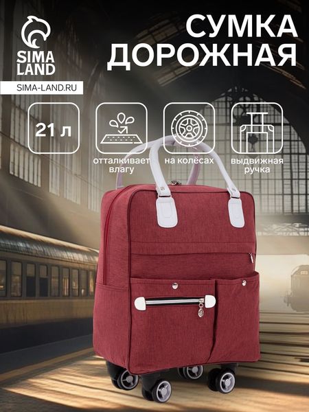 Сумка дорожная 18″ на 4 колёсах, отдел на молнии, 4 наружных кармана, бордовая