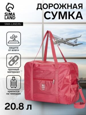 Сумка дорожная на молнии, 3 наружных кармана, держатель для чемодана, длинный ремень, бордовая. Элегантная дорожная сумка для женщин, выполненная в бордовом цвете. С практичной застежкой на молнии, она отлично подойдет для любых поездок и путешествий. Средний размер делает ее идеальным выбором для краткосрочных выездов, где все необходимое будет под рукой. Без излишних деталей и символики, но с изысканными надписями и цифровыми элементами, подчеркивающими ее современный и стильный вид. <b> Преимущества</b> <ul> <li> Эргономичный дизайн: удобные ручки и оптимальные размеры для комфортного использования.</li> <li> Универсальность: идеально подходит для деловых поездок и отдыха.</li> <li> Долговечность материала: прочный полиэстер обеспечивает долгий срок службы.</li> <li> Отсутствие излишних деталей: легкость и минимализм.</li> <li> Легкость в уходе: легко чистится и сохраняет презентабельный вид.</li> <li> Компактность: одно вместительное отделение, где поместится все самое необходимое.</li> </ul> Эта сумка — ваш надежный спутник в любой ситуации. Ее умеренная стоимость и качество убедят вас в правильности выбора. Почувствуйте комфорт и уверенность в каждой поездке. Приобретите ее сегодня и насладитесь выгодой и надежностью!