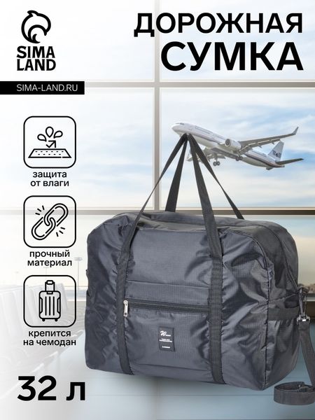 Сумка дорожная на молнии, 3 наружных кармана, держатель для чемодана, длинный ремень, чёрная