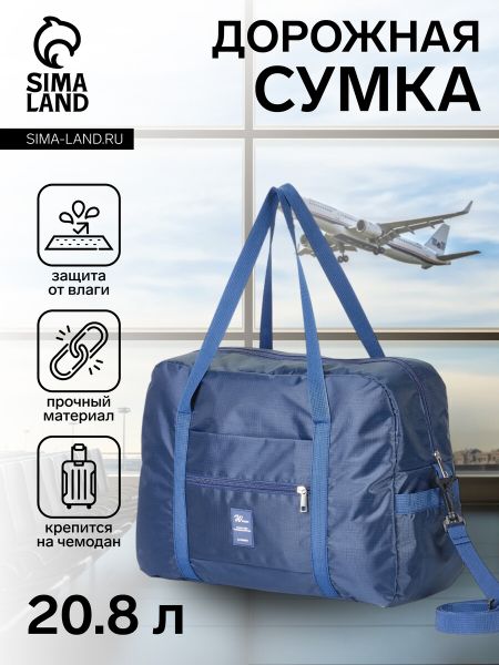 Сумка дорожная на молнии, 3 наружных кармана, держатель для чемодана, длинный ремень, синяя. Сумка дорожная на молнии, синяя — ваш незаменимый компаньон для путешествий. Средний размер 42 см в длину, 17 см в ширину и 32 см в высоту позволяет легко упаковать все необходимое. Модель выполнена из прочного полиэстера и не имеет лишних деталей: отсутствие колесиков и дополнительных отделений делает ее легкой и маневренной. <b> Преимущества</b> <ul> <li> Практична для коротких поездок: вместительность без лишнего объема;</li> <li> Легкость переноски благодаря оптимальному размеру и форме;</li> <li> Материал полиэстер надежно защищает содержимое от влаги и загрязнений;</li> <li> Простота в использовании: одна молния для быстрого доступа к вещам;</li> <li> Эргономичный дизайн позволяет носить ее как вручную, так и на плече;</li> <li> Универсальность: идеально подходит для путешественников любого пола;</li> </ul> Надежность в каждой детали. Синяя дорожная сумка на молнии — это ваше бюджетное решение для комфортных путешествий. Подходит для всех и ко всему. Берите с собой только необходимое, и оставляйте лишнее дома. Сделайте правильный выбор для своего удобства и спокойствия.