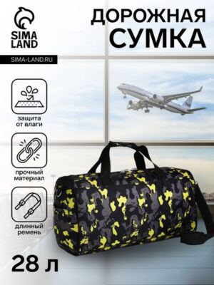 Сумка дорожная на молнии, наружный карман, длинный ремень, чёрная, жёлтая