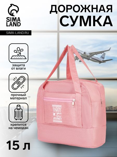 Сумка дорожная на молнии, отдел для обуви, наружный карман, держатель для чемодана, розовая. Дорожная сумка розового цвета для женщин. Компактная и стильная, идеально подходит для кратких поездок и повседневного использования. Изготовлена из прочного полиэстера с молнией и тематическими надписями и цифрами. Размеры: 35 см в длину, 27 см в высоту и 16 см в ширину. Два отделения для удобной организации ваших вещей. <b> Преимущества</b> <ul> <li> Легкость и компактность — легко переносить и удобно хранить.</li> <li> Долговечность материала — полиэстер устойчив к износу и не теряет цвет.</li> <li> Эргономичный дизайн — комфорт в использовании без дополнительных усилий.</li> <li> Простой уход — легко очищается, сохраняя внешний вид.</li> <li> Отличное решение для поездок на выходные — все необходимое под рукой.</li> <li> Элегантный розовый оттенок — подчеркивает стиль и индивидуальность.</li> </ul> Надежная и доступная сумка для тех, кто ценит практичность и стиль. Выбирайте разумно: компактная дорожная сумка — это ваше лучшее решение для коротких поездок и деловых поездок. Экономьте с выгодой и наслаждайтесь комфортом на каждом шагу.