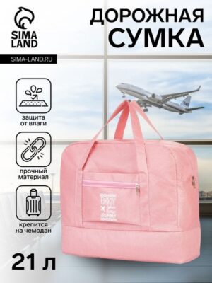Сумка дорожная на молнии, отдел для обуви, наружный карман, держатель для чемодана, розовая