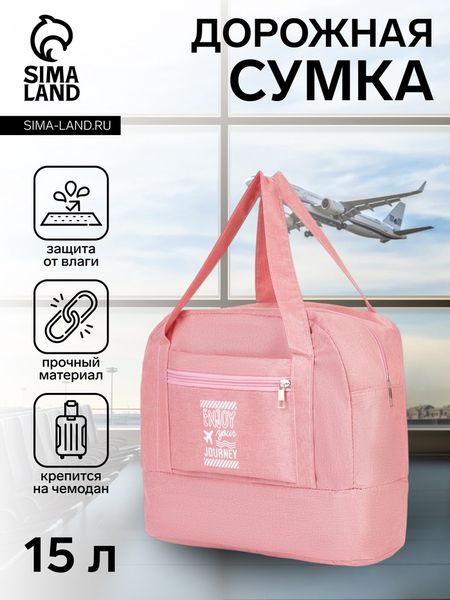 Сумка дорожная на молнии, отдел для обуви, наружный карман, держатель для чемодана, розовая