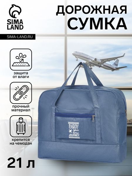 Сумка дорожная на молнии, отдел для обуви, наружный карман, держатель для чемодана, синяя