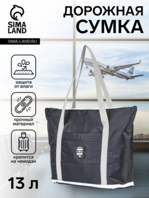 Сумка дорожная на молнии, с увеличением, наружный карман, держатель для чемодана, длинный ремень, чёрная